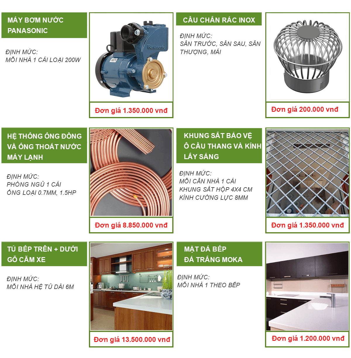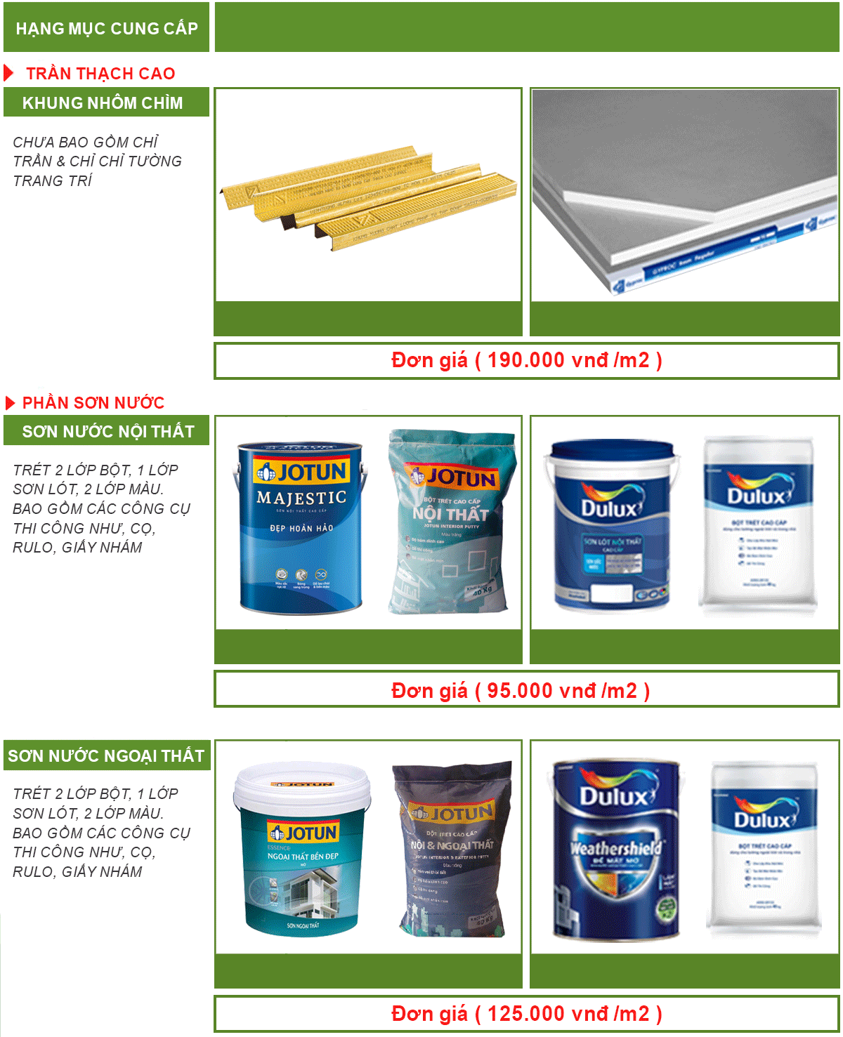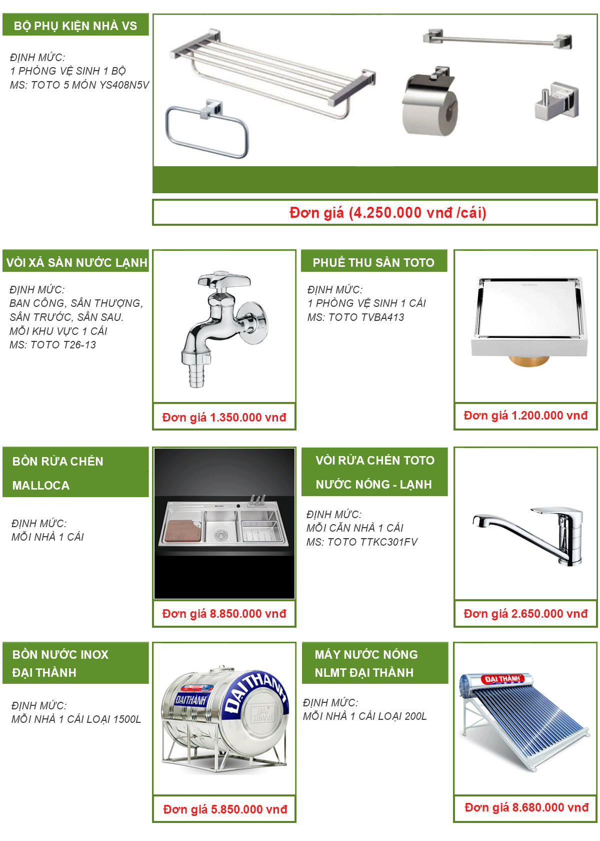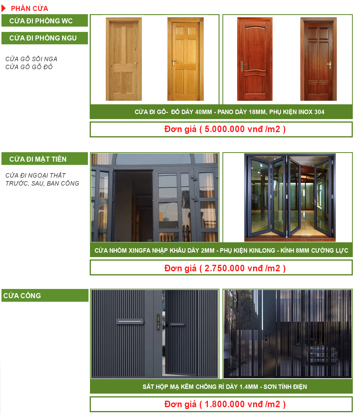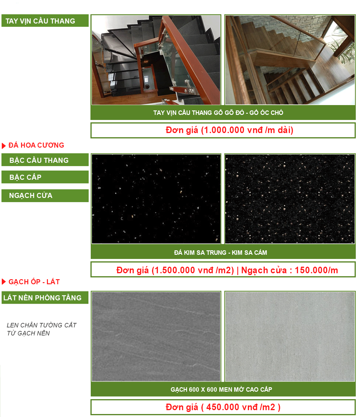 ĐƠN GIÁ BỔ SUNG CHO PHẦN THÔ 1.200.000 (đ/m2)
