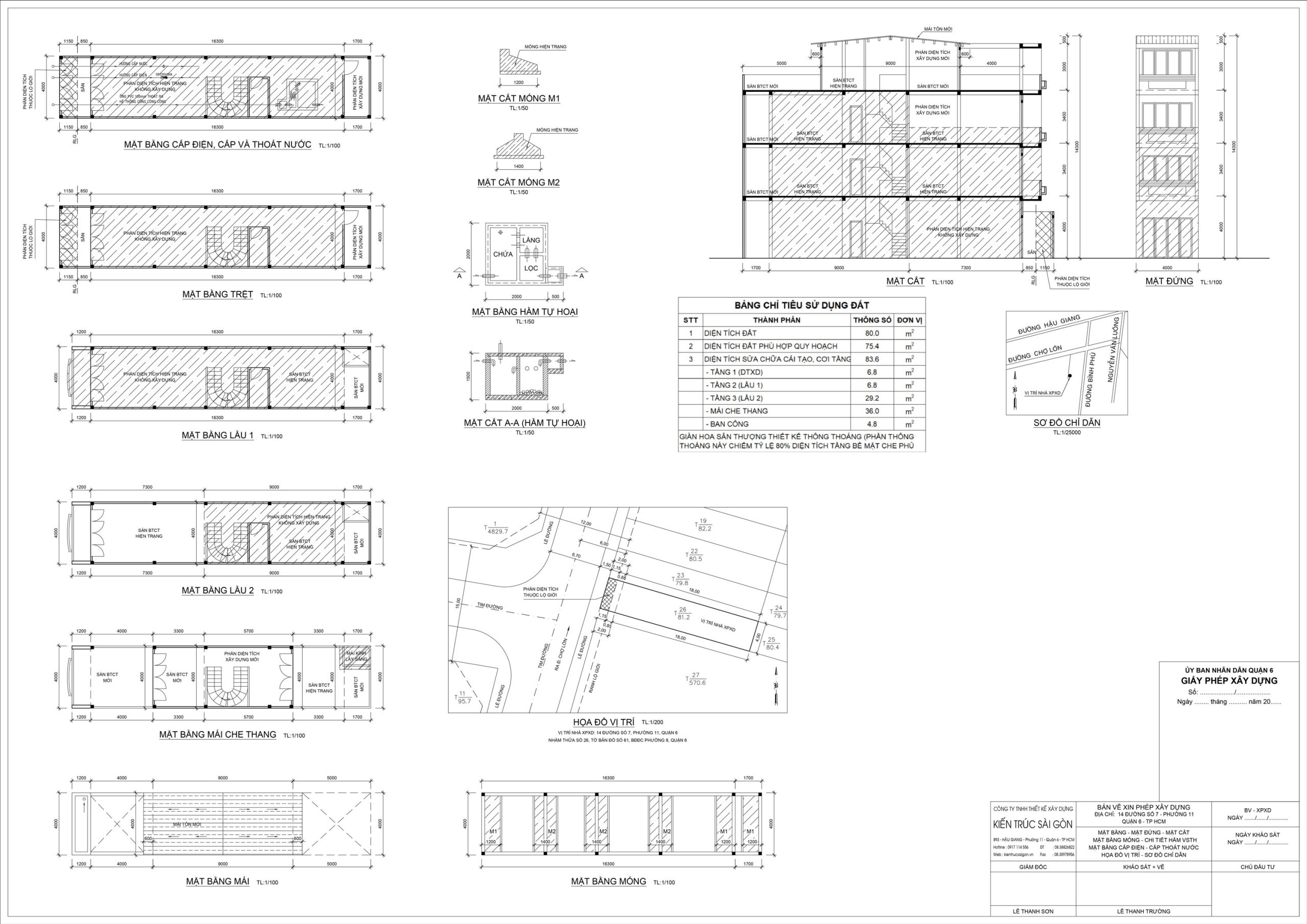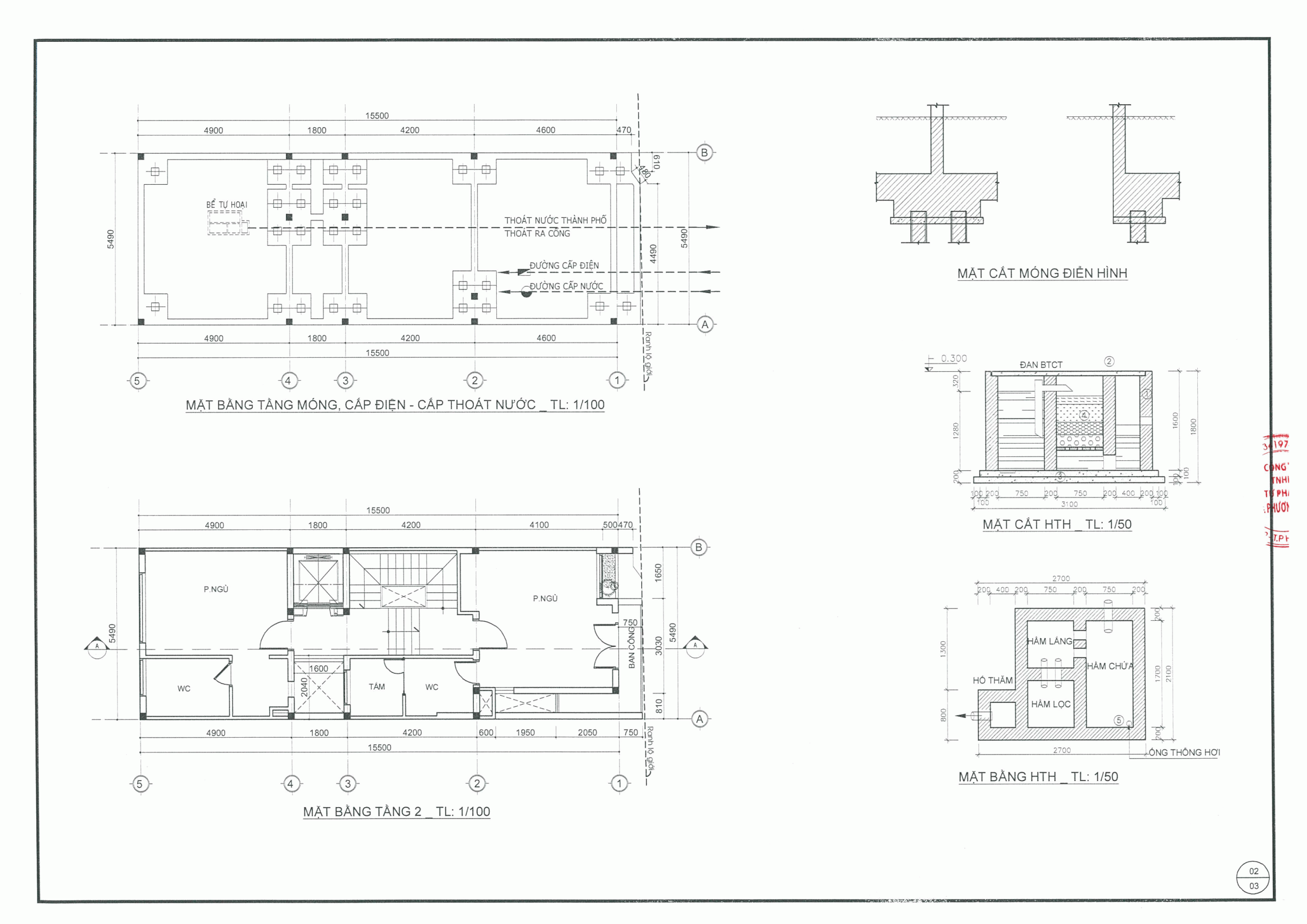 Bản vẽ móng và mặt cắt móng: Kèm theo sơ đồ đấu nối hệ thống hạ tầng kỹ thuật.